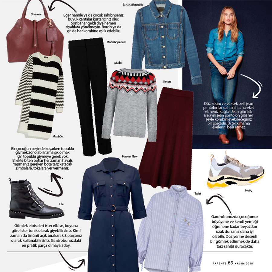 Yazıyı, bir annenin kapsül gardrobuna örnek vererek bitirmek istiyorum ama siz yine de bunları gardrobunuzda olmak zorunda şeklinde görmeyin. Eğer bir parçanın rengini beğenmiyorsanız, daha çok kullanacağınıza inandığınız başka bir renkte bir kıyafet edinin. Eğer vücut tipiniz önerdiğim pantolon için uygun değilse, o renkte bir pantolona başka bir kesimde yer verin. Ve tabii ki zevkinizi ve hayatınızdaki sorumlulukları bu denkleme katmayı unutmayın.