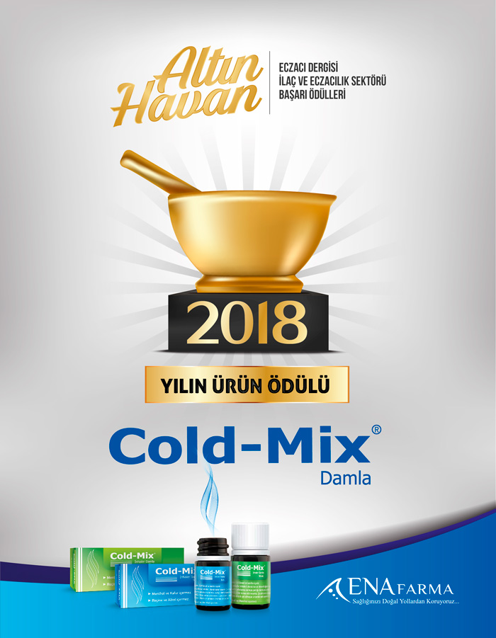 Cold-Mix Damla, yakaya veya yastığa damlatıldığında; bebek, çocuk ve yetişkinlerde burun tıkanıklığını gideren doğal içerikli tek üründür. Buruna temas ettirilmeden kullanıldığı için gece uyurken dahi, uyanmadan ve uyandırmadan burun tıkanıklığını açar ve rahat bir nefes alınmasını sağlar. Hem çocuğun hem de ebeveynin uyku konforunu artırır. Ayrıca okulda, kreşte, toplu taşıma araçlarında bulaşma riski daha yüksek olan soğuk algınlığı ve grip gibi solunum yolu hastalıklarına karşı korur. Cold-Mix, tüm bu etkinliği ile eczacılık camiasının en saygın ödülü olan Altın Havan’da “Yılın Ürünü” ödülüne layık görülmüştür.