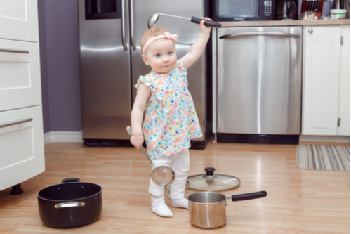Tencere, tabak, plastik bardak, çatal ve bıçak gibi mutfak gereçleriyle oynayabilirsiniz. Tabii çocuğunuz için tehlikeli buluyorsanız oyuncak olan mutfak gereçleriyle de oynayabilirsiniz. Birlikte yemek yapıyormuş gibi yaparken onu hem gerçek hayata hazırlar hem de sosyal becerilerini arttırabilirsiniz.