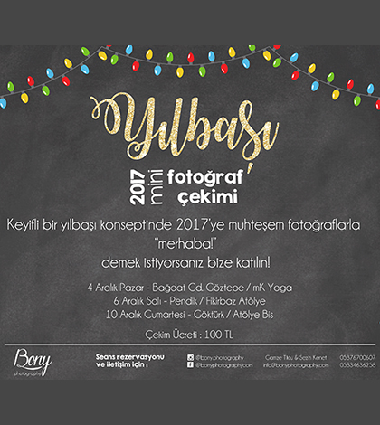 2017’ye muhteşem fotoğraflarla merhaba demek istiyorsanız, Bony Photograpy’e katılın. Seanslar için rezervasyon almayı unutmayın.