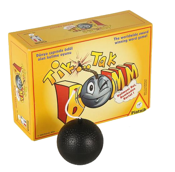 TIK TAK BOMM – 10 ile 60 saniye arasında patlayan ancak ne zaman patlayacağı bilinmeyen bombanın, kendi ellerindeyken patlamaması için hızlı, uygun ve önceden söylenmemiş kelimeler bulmalıdır. Kelime dağarcığını geliştirmek istediğiniz her bir dilde oynanabilen Mucit Panda tavsiyesidir.