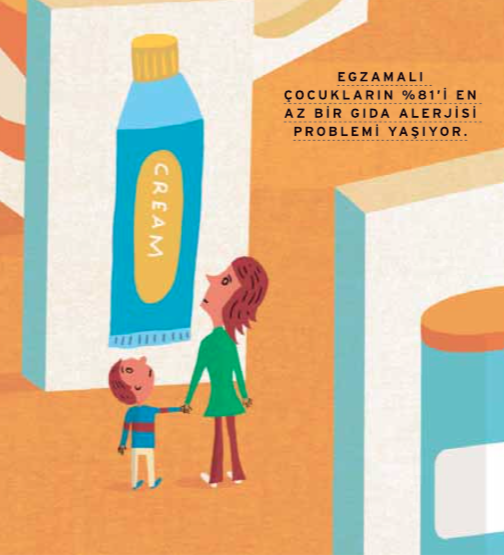 3 Çocuklu bir anne olan Alev, bebeğindeki egzamanın kontrol altında olduğunu düşünüyordu. Aslında 10 ve 13 yaşlarındaki daha büyük 2 çocuğu da pek çok çocuk gibi cilt rahatsızlıklarından muzdarip. Alev, alerjik etkisi olmadığıbelirtilen deterjanlar ve nemlendiricileri günlük kullanımlarında tercih etmeyi öğrendi. Geceleri bebeğinin kendini kaşımasına mani olmak için onun ellerine tek parmaklıeldivenler taktı. Ancak henüz birkaçaylıkken bebeğin ortaya çıkan diğer cilt hassasiyetleri daha da kötüleşti. Daha sonra başka türlühassasiyetler de ortaya çıkmaya başladı. Bebeğine süt ürünleri vermesi cildindeki kızarıklıkların artmasına sebep oldu ve ufaklık huysuzlanmaya başladı.10 aylıkken yumurta alerjisinin olduğu saptandıki bu alerji kendini aslında annenin ilk başlarda bebeğinden yana fazla kaygılanmadığı kusma nöbetleri ile kendini gösterdi. Bebeğin 1 yaşında ise kendini kızarmışdudaklarla gösteren fıstık alerjisine yakalandığıortaya çıktı. Alev, ivedilikle oğlunu bir alerji uzmanına götürdü. “Bebeğimin onun sağlığına yaşamsal derecede tehdit edici olabilen fıstık alerjisi de dâhil olmak üzere birçok gıda alerjisi ile yaşadığıortaya çıktı.““İşte tam da o zaman ilk defa egzamanın diğer alerjilerle yakından ilişkili olduğunu öğrendim.”