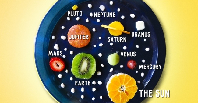 Güneş sistemini öğretmek için meyvelerden yardım alabilirsiniz. Örneğin kivi, portakal, çilek, üzüm… Fotoğraftaki gibi bir anlatım, ilgisini daha çok çekebilir. Hatta bu yöntem, çocuklara meyveyi sevdirmenin yollarından biri de olabilir.