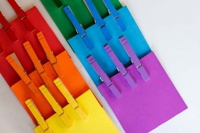 Renklerle başlayalım. Kırmızı, turuncu ve sarı karıştırılmaya meyilli renkler. Kendi minik dünyası henüz renklenirken, çocuğun renkleri ezberlemesi kolay olmayabilir. Bakın şöyle bir önerimiz var. Renkli kartonları aynı renk mandallarla tutturun ve önce görsel hafızaya hitap edin. Mandallardı, kartondu derken aklında daha çok yer edecektir.