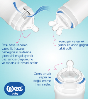 Wee Baby Natural Biberonları geniş emzik yapıları , yumuşak ve esnek emzik uçları ile bebeğinizde doğal beslenme hissi yaratıyor. Böylelikle bebeğiniz emme ile biberonla beslenme arasında kolaylıkla geçiş yapmasına yardımcı oluyor. Böylelikle annesinden uzakta olan bebekler Wee Baby Natural Biberonlarıyla beslendikten sonra anneleriyle buluştuklarında emmeye devam edebiliyor. Biberon emziğinin antikolik özelliği ise bebeklerin beslenirken hava yutmasını engelleyerek olası gaz sancılarının önüne geçmeye yardımcı oluyor.
