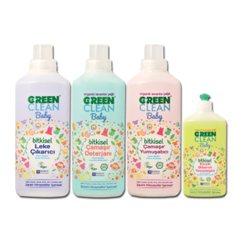 - U Green Clean Baby yumuşatıcısının içeriği klasik yumuşatıcı formüllerinden tamamen farklı olup bebek cildine ve doğaya zarar vermez.