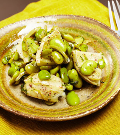 - Tencerenin ağzını hava almaması için folyo ile kapatıp orta hararetli ateşte enginar ve baklalar yumuşayana kadar pişirin.