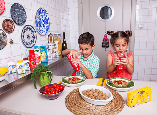 Makarnaları tabaklara alıp, köftelerimizle üzerine göz, burun, kolye istediğimizi yapıp Çap Çap Ketçapla da gülücüğümüzü kondurduktan sonra “ben sebze yemem” diyen çocuğumuzun nasıl iştahla yediğini görüp doyuyoruz.